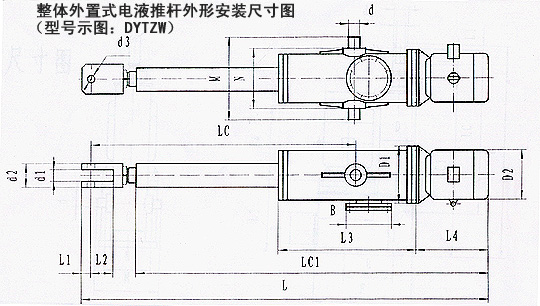 电液推杆是一种机、电、液一体化的新型柔性传动机构、它以执行机构(油缸)、控机构( 液压控制阀组)和动力源(油泵电机等)。根据现场安装空间及用户使用情况电液推杆可有多种 结构形式(具体见电液推杆外形安装尺寸图,也可根据用户要求定制样式)。电动机通过正反转 驱动双向液压泵正反输出压力油,经液压控制阀送至油缸,实现活塞杆的往复运动。